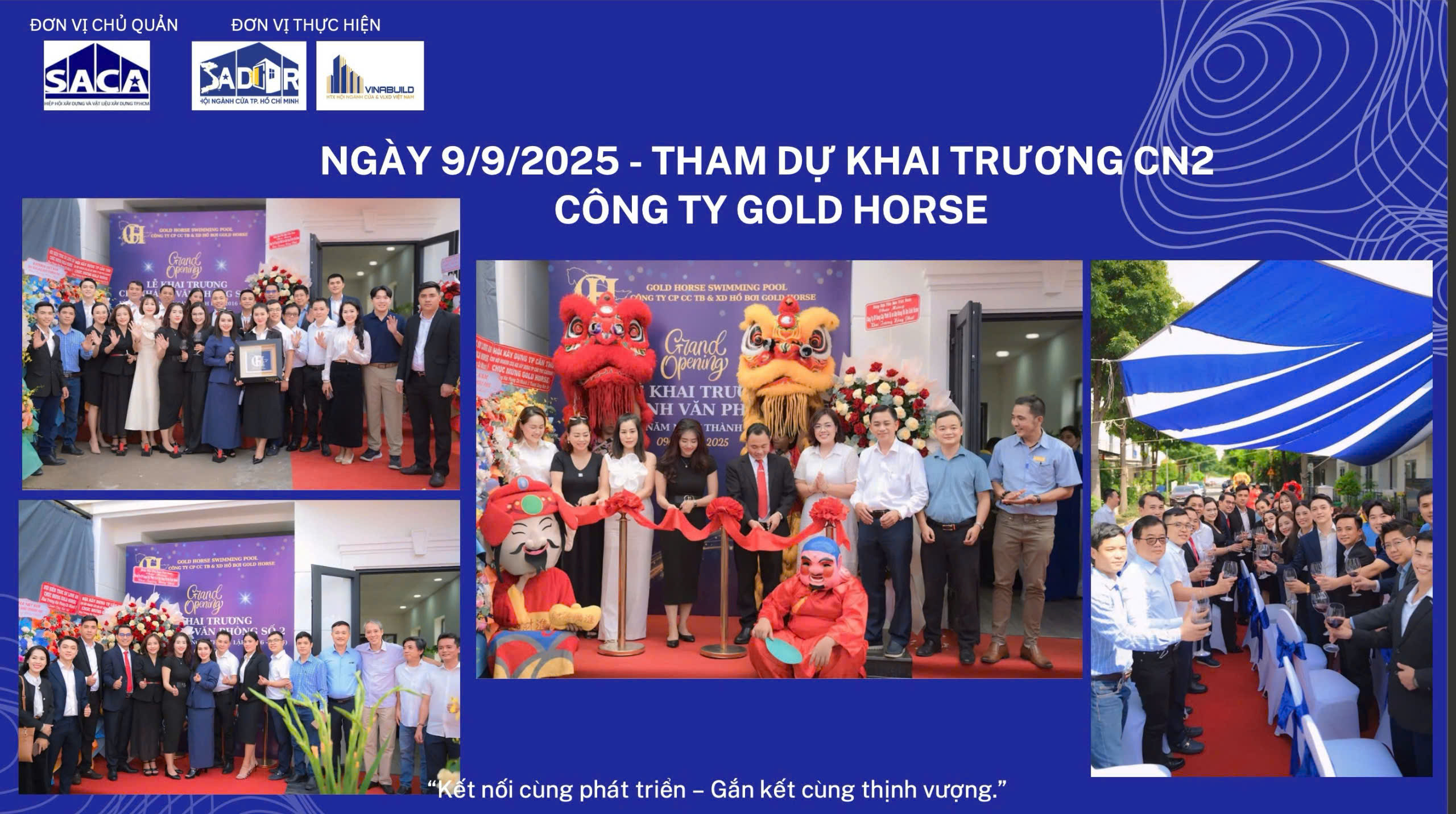 09/09: Tham dự khai trương Chi nhánh 2 Công ty Gold Horse – thể hiện tinh thần đồng hành cùng doanh nghiệp hội viên.