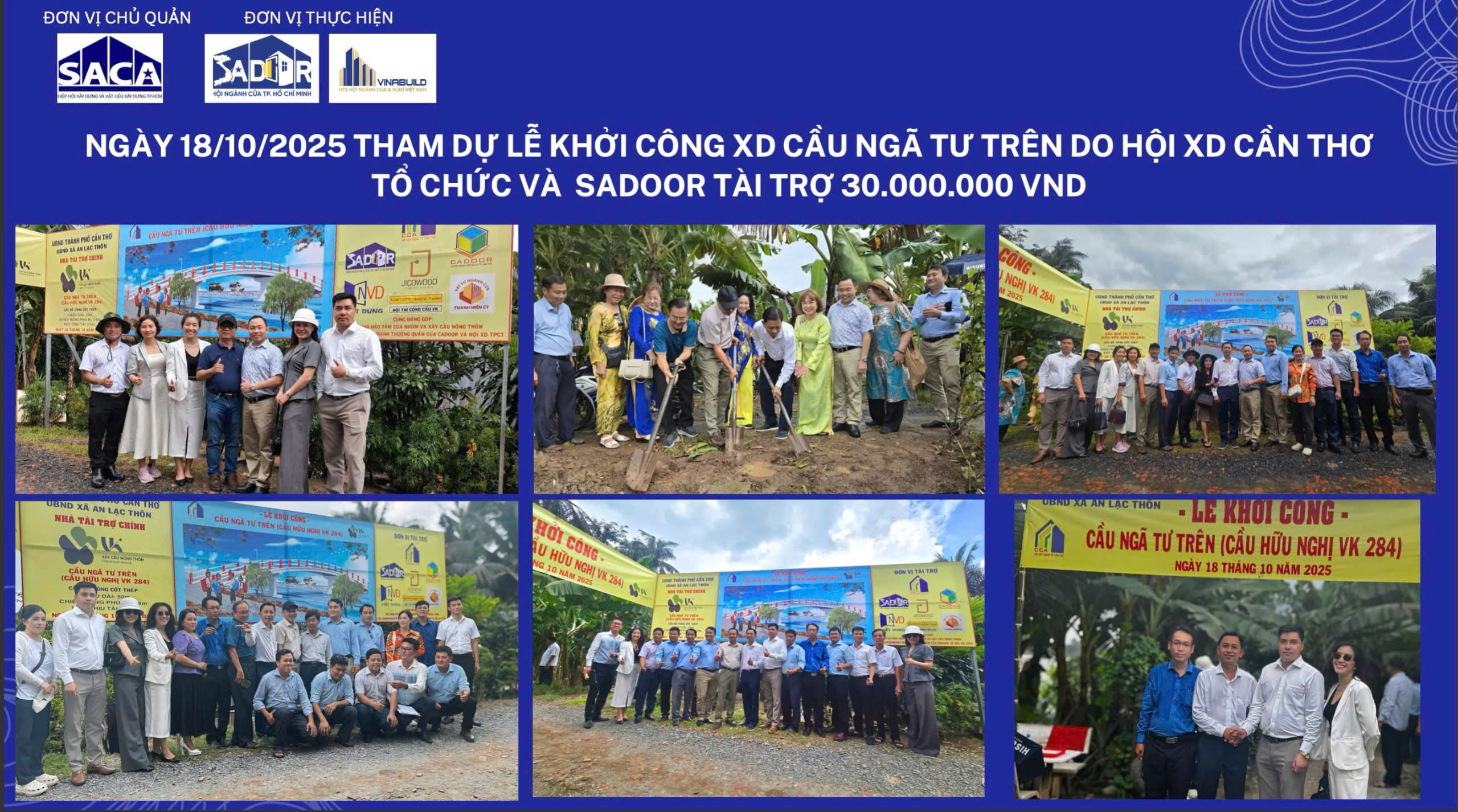 18/10: Tham dự Lễ khởi công cầu Ngã Tư Trên tại Cần Thơ – SADOOR tài trợ 30 triệu đồng, thể hiện tinh thần trách nhiệm xã hội.