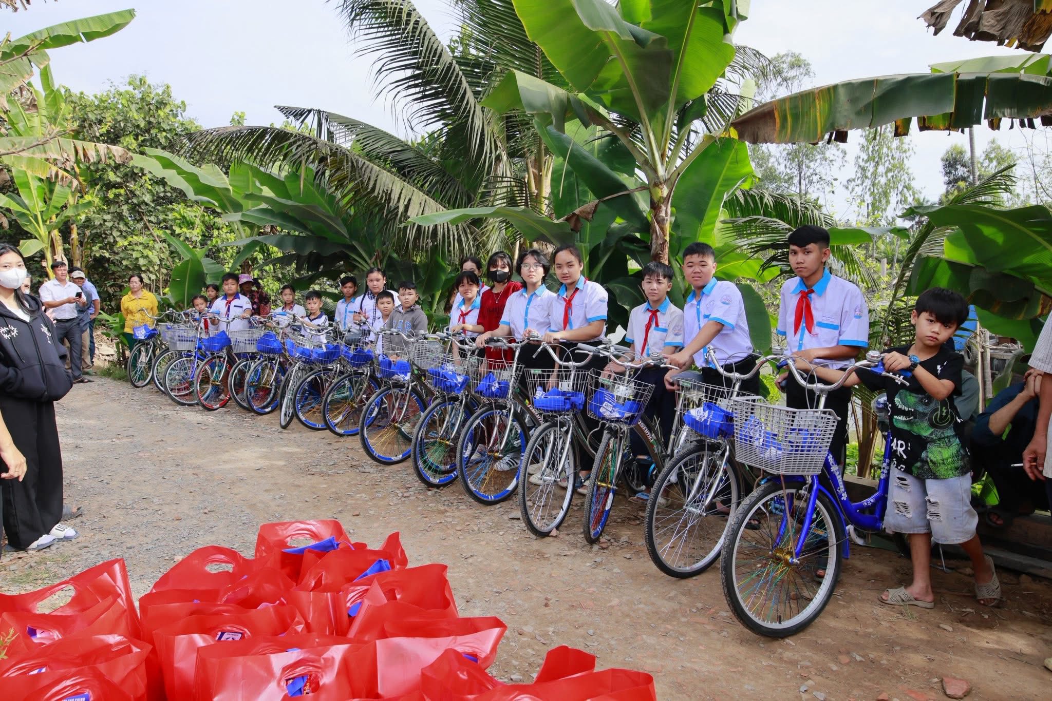 • 150 phần quà Tết và 20 xe đạp do bà Phạm Hà – đại diện Nhà máy Nhôm Vạn Xuân Thành và Nhà máy Kính Hoàng Đạo tài trợ và trao tặng.